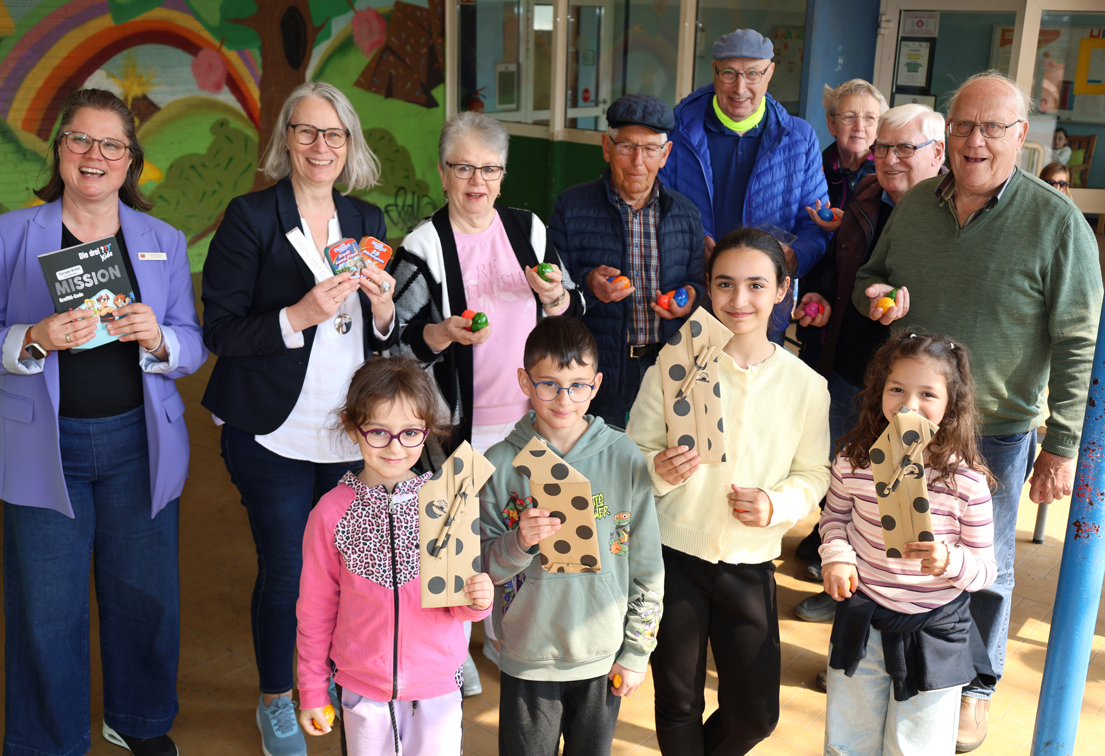 Stellten die zweite Auflage der Notfalldose für Moers vor (v.l.n.r.): Michael Rüddel von der städtischen Leitstelle Älterwerden, Apotheker Dr. Simon Krivec, Karl-Heinz Theußen vom städtischen Beirat für ältere Menschen und Giovanni Malaponti von der Sparkasse am Niederrhein. In rund 800 Kühlschränken hat sie aktuell schon ihren festen Platz.