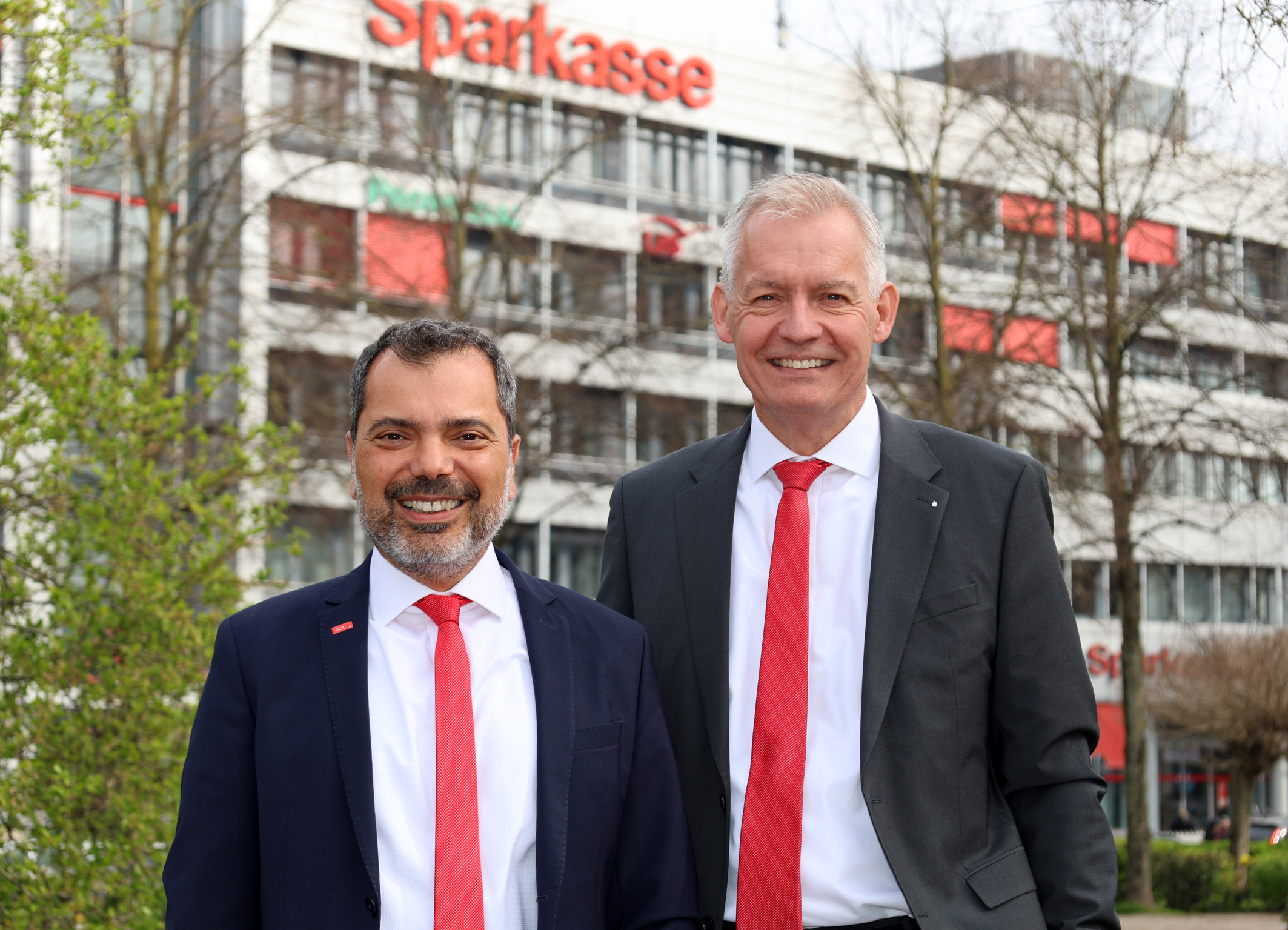 Giovanni Malaponti und Bernd Zibell blicken zufrieden auf das Geschäftsjahr 2025 der Sparkasse am Niederrhein zurück.