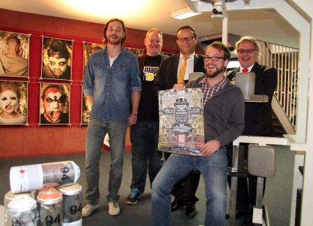 Beim Rundgang durch das Studio Artlon (v.l.n.r.): Marco Kutz, Thorsten Weber, Frank-Rainer Laake, Philipp Rott und Thorsten Holzgraefe.