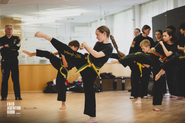 Peter Hambach gründete vor genau 30 Jahren den Verein für Taekwondo-Freestyle und hat seither einige hundert Kinder und Jugendliche in den aus Korea stammenden Techniken für Fuß- und Handabwehr unterrichtet. „Es geht nicht um Kampf oder Aggression, sondern um Konzentration, Disziplin und Respekt“, sagt er. Alle seine Schützlinge seien parallel zu ihrem Training auch in der Schule besser geworden. Rund zehn von ihnen aus allen Altersgruppen hatte Peter Hambach mitgebracht. Sie zeigten den Gästen, wie sie trainieren und was sie können und erhielten dafür viel Applaus.